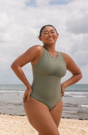 This swimsuit balances athleticism with elegance, featuring a high neck for sun protection and a stylish open back design. With its high-waisted rear coverage and flattering underbust seam adorned with subtle ruching, the Ami One Piece celebrates confidence and comfort for all body types.