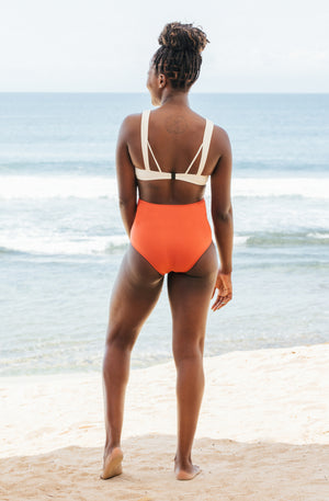 The made of this bottom is just perfect…fabric felt soft and smooth while hugging the body perfectly. It’s a modest coverage but still had me feeling free and not restricted in the hips area while surfing! Love love love this:)