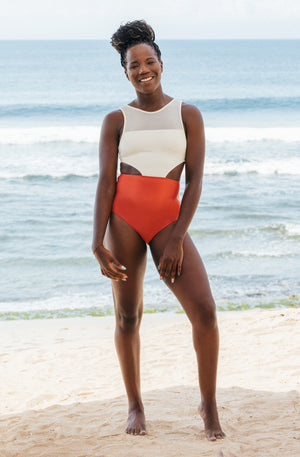 The Malibu one piece surf swimsuit is architectural, stunning and technical in design. You will feel as elegant on a longboard surfing as you will relaxing on the beach or by the pool in this stunning one-piece. Smart on coverage and revealing where it counts, the Malibu one piece is sure to be your favorite swimsuit.