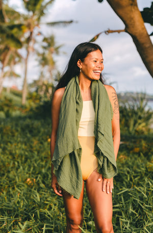 A soft, luxury Italian Recycled fabric with SPF50+ UV protection & ultra chlorine resistant.