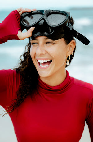 The Scorpion Sun Crop Top rash guard was born from a surf trip down the Baja coast, where we scored the best swell of the year—but also some serious sunburns. Even with SPF 50 swimwear and zinc, the Baja sun was relentless. That’s when we knew we needed a better rash guard.