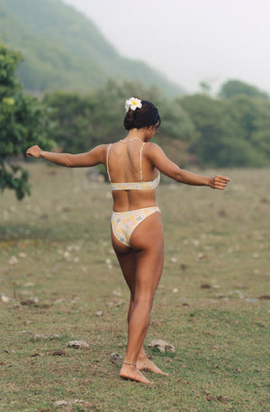 Taylor is wearing the Motu top in XS and the Azure bottom in small