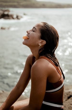 Stumbled across this suit at the Xanadu surf shop on Lombok and loved the green bean print! But ahh the fit is amazing. Truly one of the first surf bikinis that I feel confident wont fly off if I get hit by a big wave. I bought the same style in red too! So cute and *actually functional!