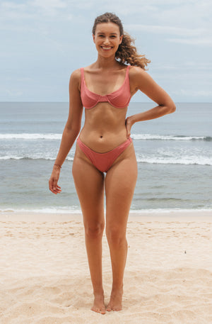 We collaborated with the beautiful and celebrated longboarder - Lola Mignot, to design the perfect surf bikini bottom. The Lolita offers just the right amount of front and bottom coverage, while its high-cut leg is beyond flattering. Don't be fooled by the minimalist design, it has been tested to stay put when surfing or taking walks on the beach.