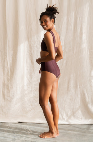 The Lucky high-waisted bikini bottom, a fusion of sustainable fashion and timeless surf style elegance. Crafted to highlight every figure with its figure-flattering design, our Lucky bottom ensures a perfect fit that accentuates your curves gracefully.