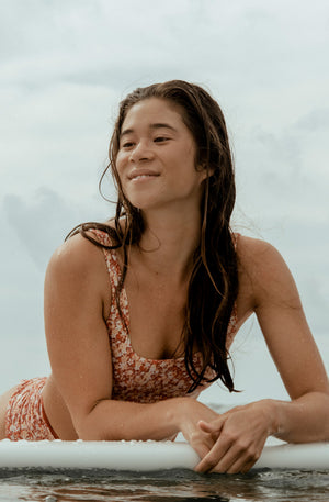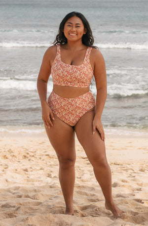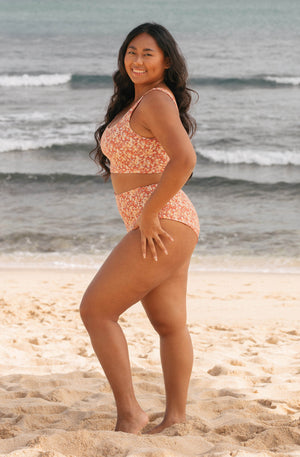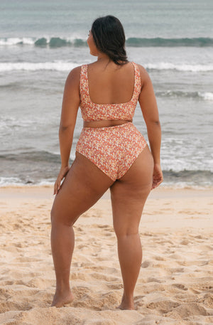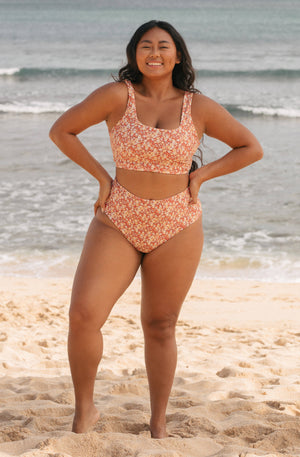 The Lucky high-waisted bikini bottom, a fusion of sustainable fashion and timeless surf style elegance. Crafted to highlight every figure with its figure-flattering design, our Lucky bottom ensures a perfect fit that accentuates your curves gracefully.