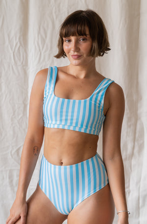 Anouk is wearing the Jane top and Lucky bottom in small but can wear an XS in the Jane top