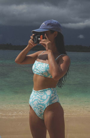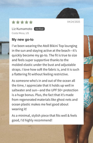 Our new Atoll Surf Bikini Top blends effortless style with performance, featuring a secure bandeau fit with adjustable shoulder straps for customized support.