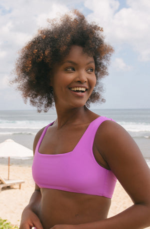 Our best selling Eden surf bikini top blends a sleek, minimalist design with eco-friendly luxury. Ideal for ocean lovers, its lost lasting and functional fabric ensures comfort and style for surfing, swimming, or simply soaking up the sun.