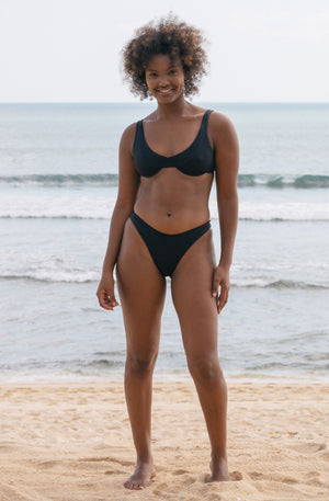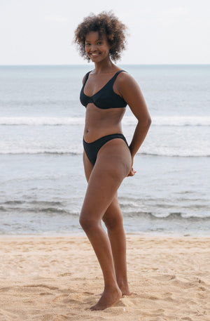 We collaborated with the beautiful and celebrated longboarder, Lola Mignot, to design the first SEPTEMBER underwire surf bikini top. The Rita offers support, style and comfort and classic design allows focus to be given to the detailed construction and beautiful Italian eco ribbed fabric.