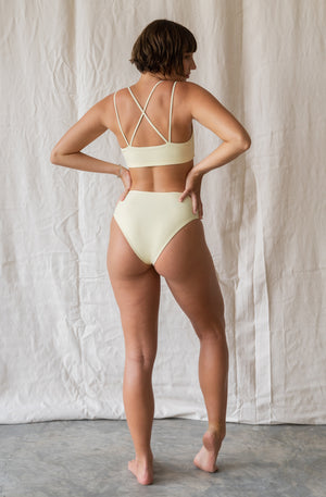 Featuring a pullover design with distinctive double straps and a criss-cross back, plus an internal elastic band for unmatched support, the Topanga Surf Bikini Top is your go-to for both comfort and performance.