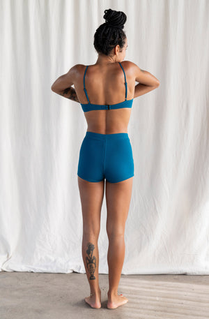 The Josie Boyshorts in Agave Blue Rib were designed in collaboration with our good friend, Karson Lewis. Made for endless waves and all-day adventure, the Josie Boyshorts are your go-to for secure, fuss-free coverage. With a 2” inseam, these retro inspired boyshorts bikini bottoms offer just the right length—keeping you covered without holding you back.