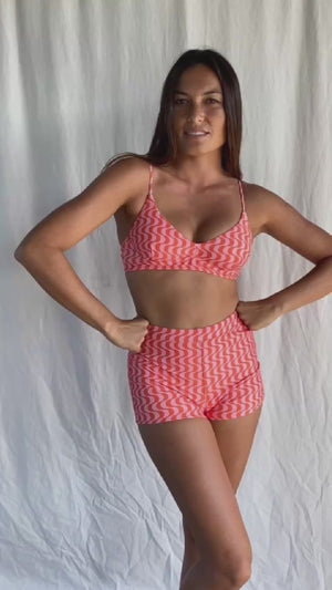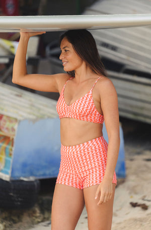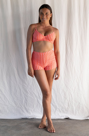 Julia and Yasmin are wearing the Maya top and Josie boyshorts in small