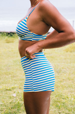 Ambre is wearing the Maya top and Josie boyshorts in small