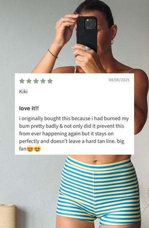 A soft, luxury Italian Recycled fabric with SPF50+ UV protection & ultra chlorine resistant.