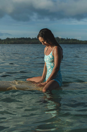 A soft, luxury Italian Recycled fabric with SPF50+ UV protection & ultra chlorine resistant.