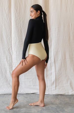 I wore this suit on a surf trip to Baja and it was perfect for sun protection and surfing in 75 degree water. As a mom of 3 it’s hard to find a suit that is both flattering, functional and protective. I love the cut of the butt and the high neck. The material is also very high quality and doesn’t slip around while surfing. I’d buy this in every color!
